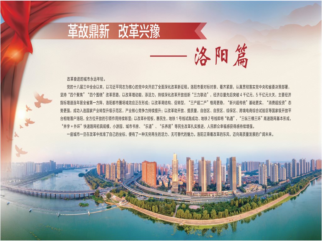 革故鼎新 改革興豫——黨的十八屆三中全會(huì)以來河南省全面深化改革成果圖片展·洛陽篇 發(fā)布時(shí)間:2021-01-15 點(diǎn)擊:4638 上一篇:革故鼎新 改革興豫——黨的十八屆三中全會(huì)以來河南省全面深化改革成果圖片展 下一篇:寒冬走訪真情在 使命不忘記心間